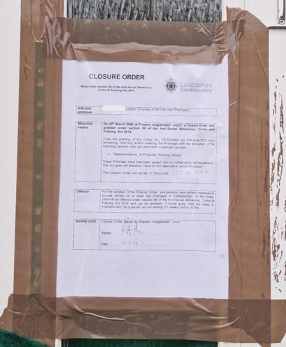 Sgt Adam Robinson of the Fylde Neighbourhood Policing Team said: “We take reports of anti-social behaviour incredibly seriously and I hope this gives reassurance to the communities affected by this property that we will act on their concerns.